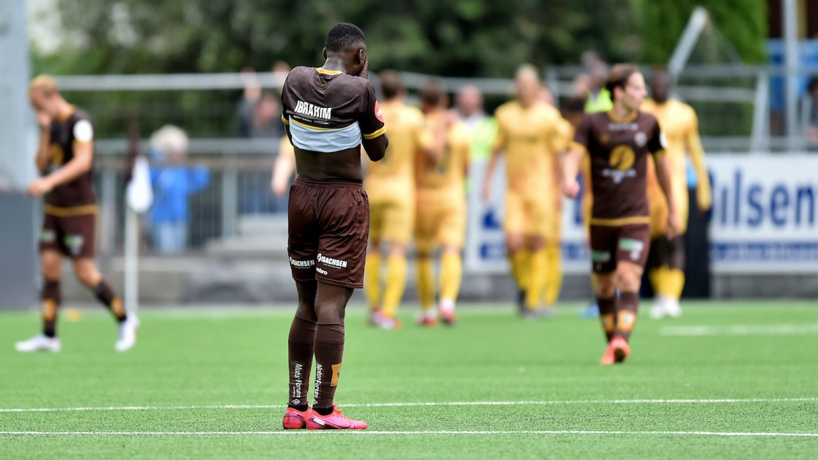 Men vertene svarte umiddelbart. Ibrahim Shuaibu brøt på egen banehalvdel og fant spisskollega Fredrik Brustad før han selv la inn turbogiret og fosset mot mål. Ballen fikk han tilbake, men dessverre satte han avslutningen på feil side av stolpen. Nå hadde vi hatt to kjempesjanser, men lå likevel under.