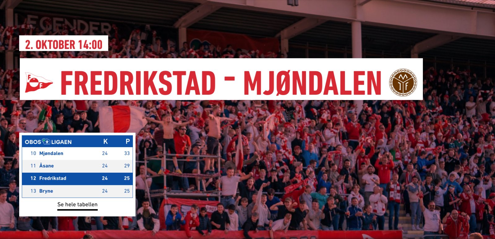 Bli med til og mot Fredrikstad søndag 2. okt. Kampstart kl.1400.