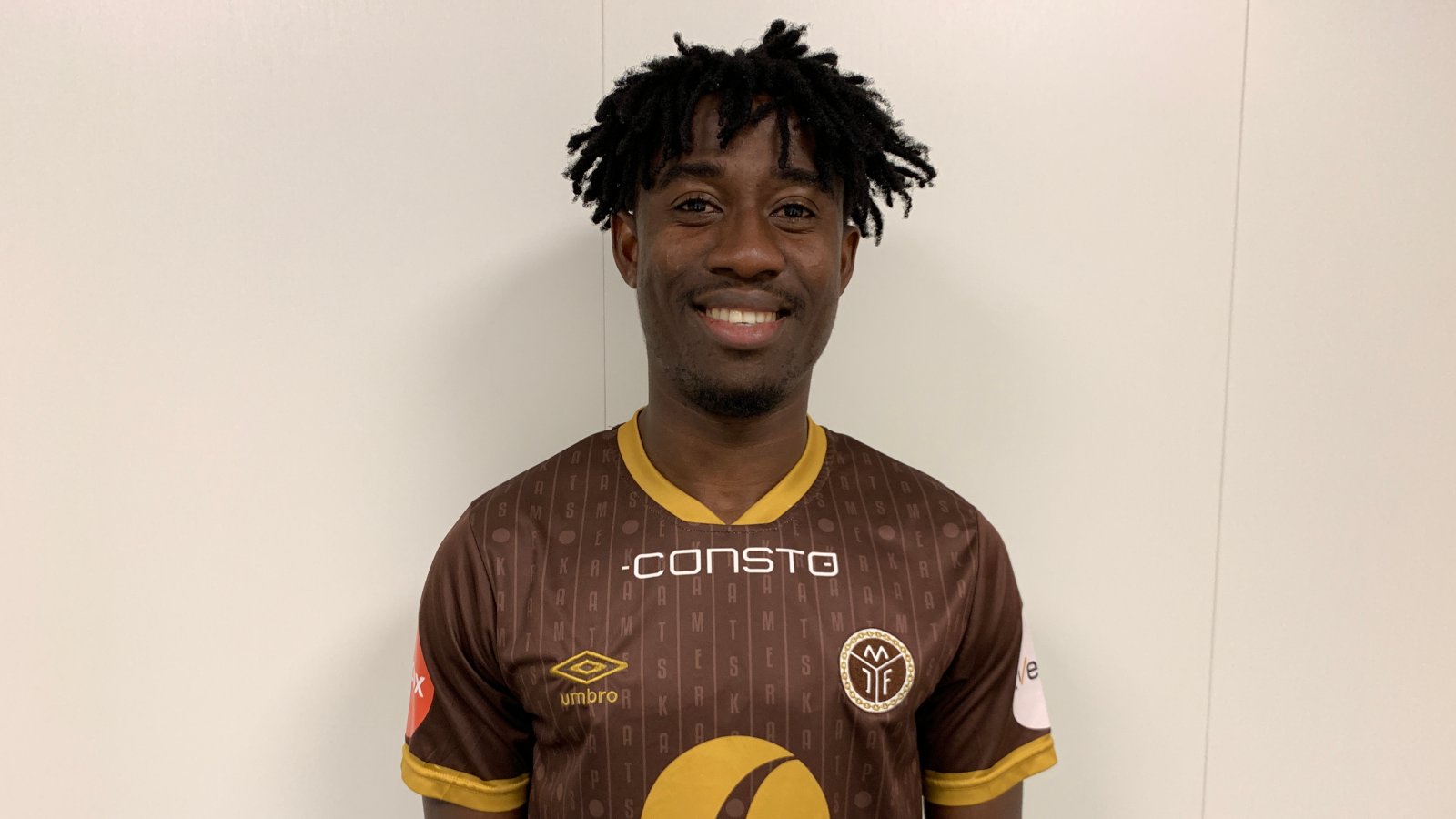 Isaac Twum (22) bytter ut gult med brunt.