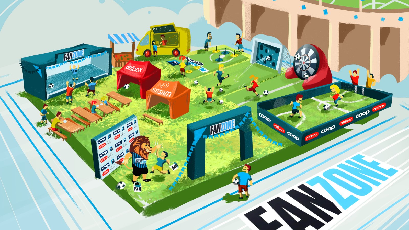 Der blir det musikk og underholdning, konkurranser og balleik for store og små. Fotballbinge og fotballdart blir det også hvor man kan få testet ferdighetene sine. Til og med Bruno tar turen innom Fanzone.