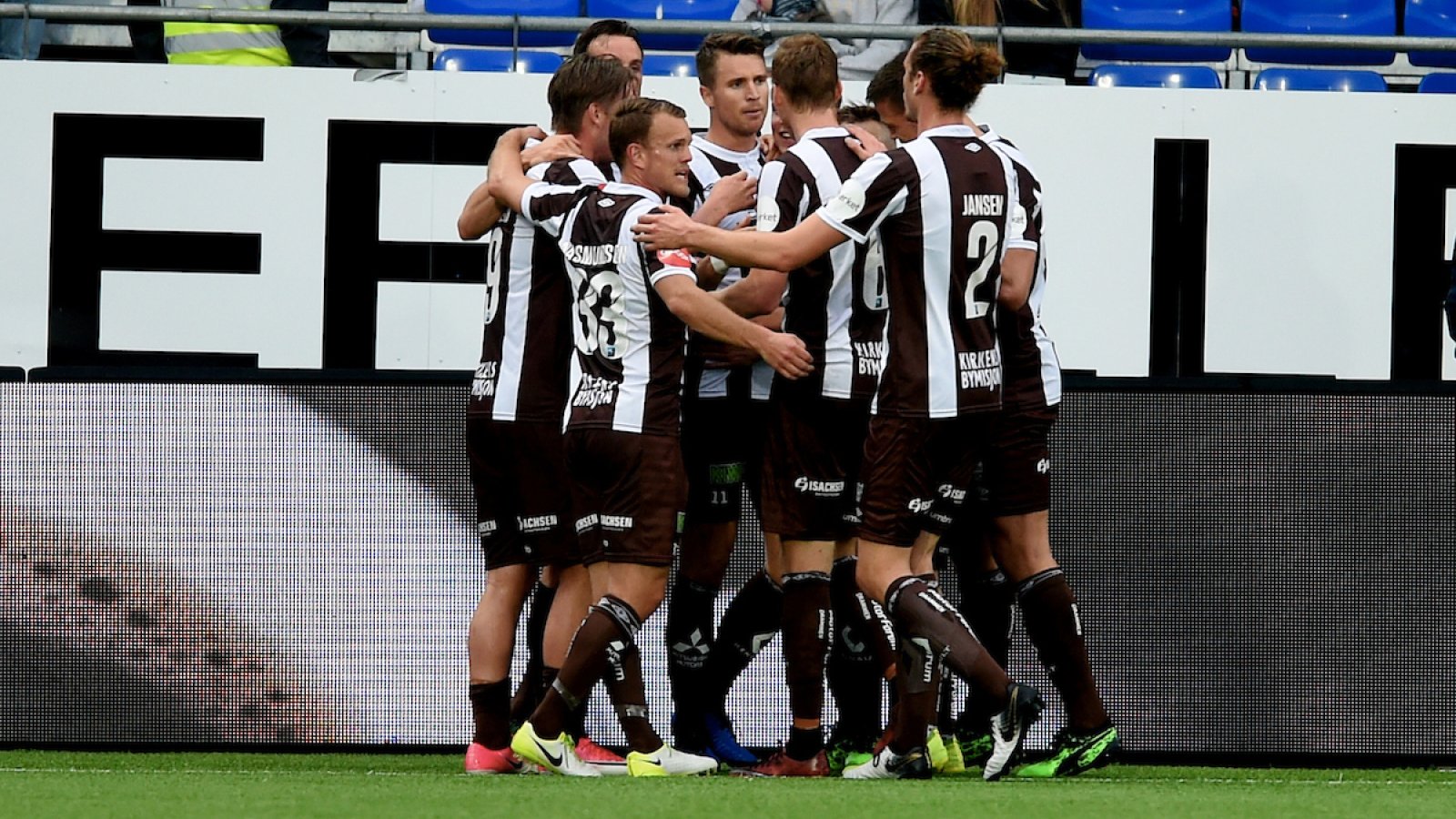 Mjøndalen, iført stripete brun og hvit, fikk en pangstart på kampen mot Sarpsborg 08. Et innkast havnet hos Tonny Brochmann på utsiden av 16-meteren. Dansken fikk ikke et rent treff på ballen, men heldigvis landet den på foten til Christian Gauseth på hjørnet av fem-meteren. Kapteinen snudde seg kjapt rundt og bredsidet ballen i lengste hjørnet.