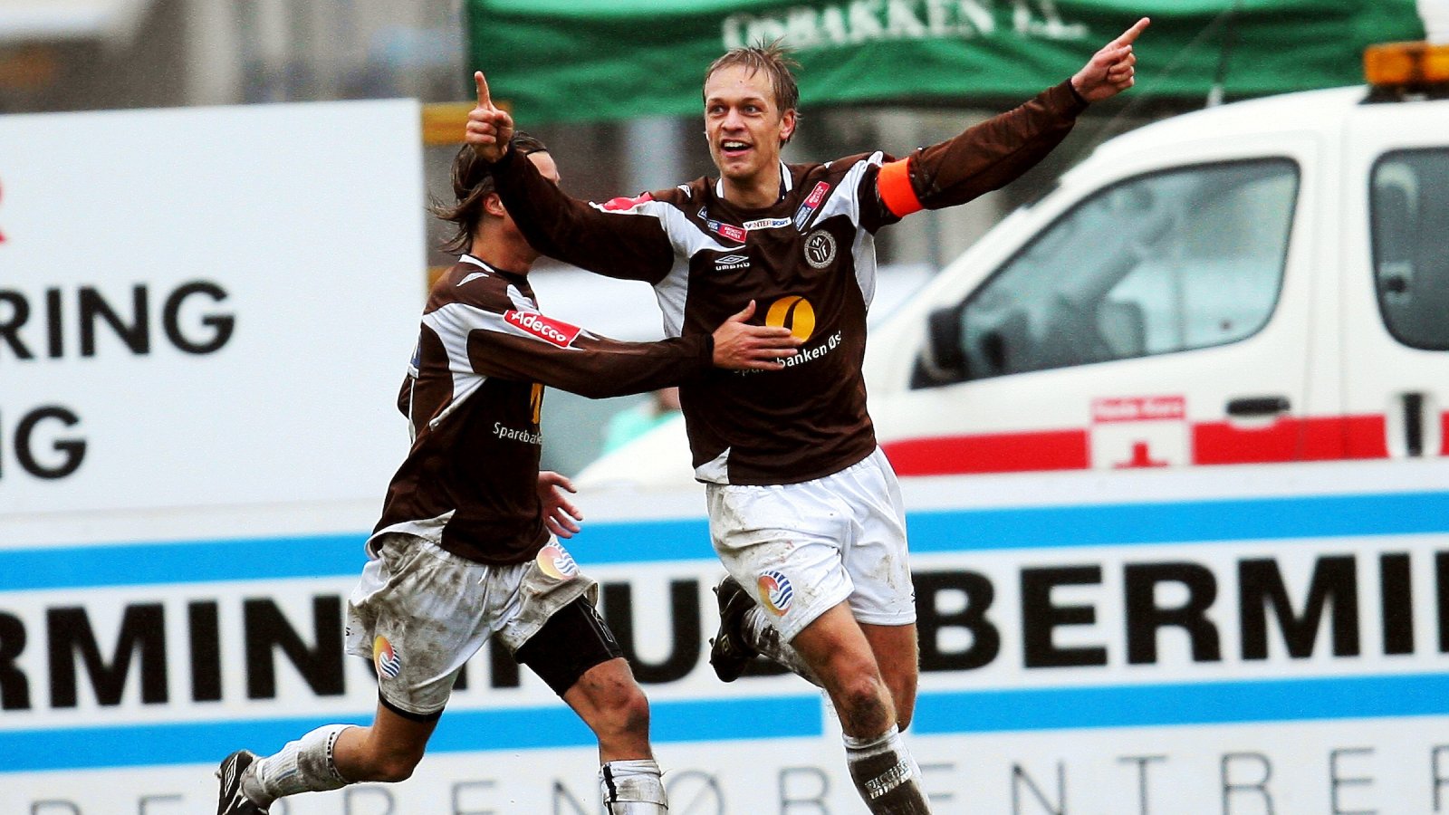 Mads Hansen og dengang spillende trener, Vegard Hansen, jubler for seier borte mot Drøbak/Frogn i 2008.