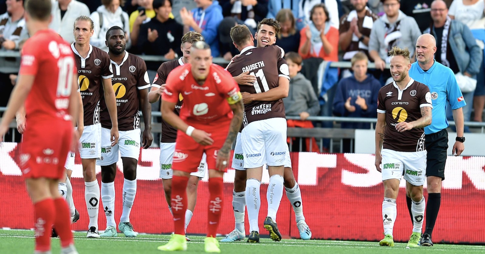De brune gikk rett i strupen på bortelaget fra start og kampen var kun åtte minutter gammel da Sondre Liseth sendte en langball mot Vetle Dragsnes. Backen gikk ned til dødlinja og slo lavt tilbake. Ballen nådde Stian Aasmundsen som bredsidet inn ledermålet.