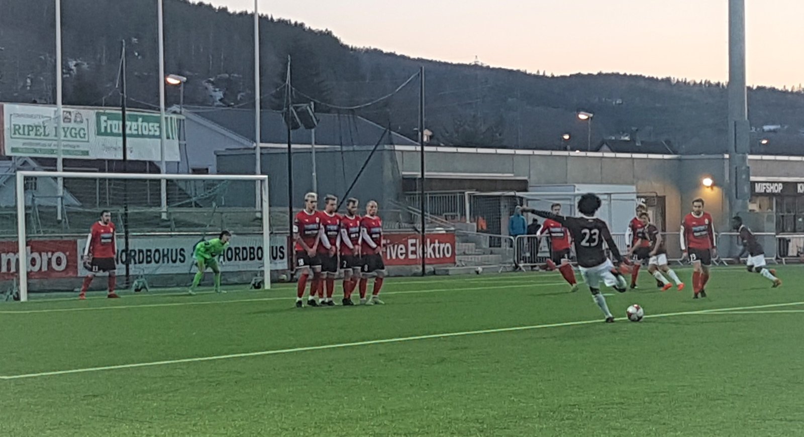Været, som selvsagt kan være et usikkerhetsmoment så langt nord på denne tiden av året, skulle vise seg å være fint. Null grader, beskjedent med vind og lav arktisk sol er så visst ikke å kimse av når man er så langt øst som et Mjøndalen-lag antakelig aldri har spilt før. Men førsteomgangen skulle være lite å skrive hjem om.